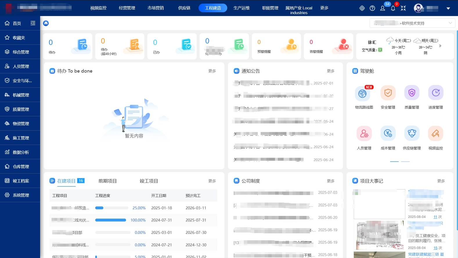 实现工程质量管理的规范化、精细化管理,系统建立了全面的质量管理监督体系,加强对现场关键工序、关键节点的控制,减少人为主观误判,实现质量管理流程化、监督检查数字化。 功能包...